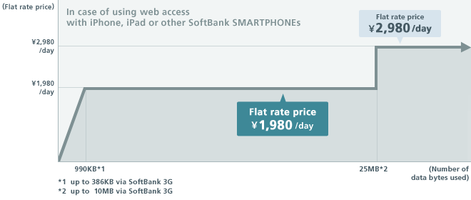 - Connecting to a carrier that is not a participant in the flat rate offer may result in high overseas packet data communication charges. If these exceed a value set by SoftBank, you will be notified of this by mail on the following day or later. (Excluding phones that cannot receive SMS.)